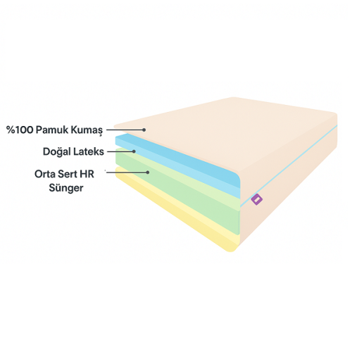 - Üst Konfor Katmanı: 4 cm yüksekliğinde 65 Dansite Doğal Lateks Sünger